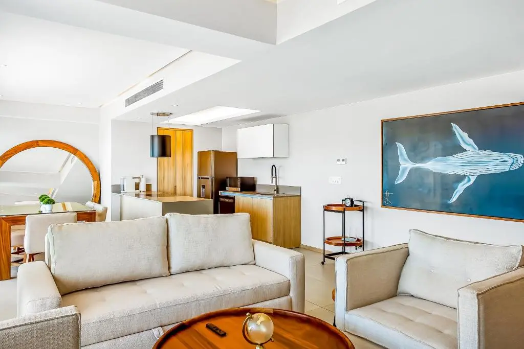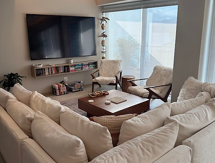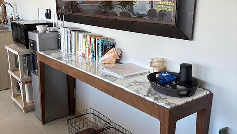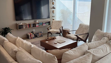 The space is fully furnished with a modern beach flair. Enjoy cooking in our fully equipped kitchen, offering filtered drinking water, a water cooler and ice, along with many comfortable features to relax, connect and unwind.
